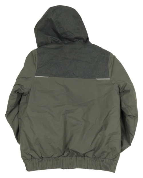 Tmavokhaki/šedá šusťáková funkční zateplená bunda s logem a kapucí Quechua
