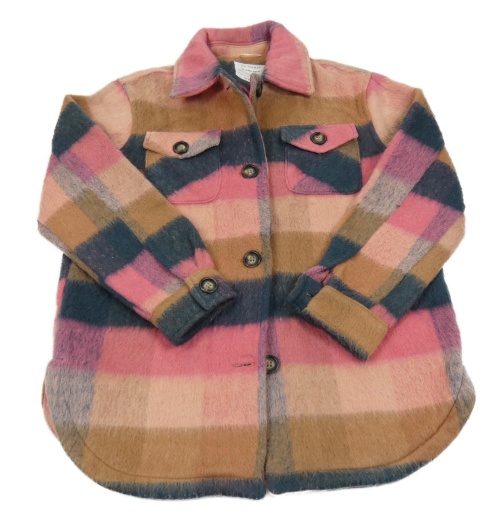 Růžovo-hnědo-tmavomodrá kostkovaná košilová bunda PRIMARK