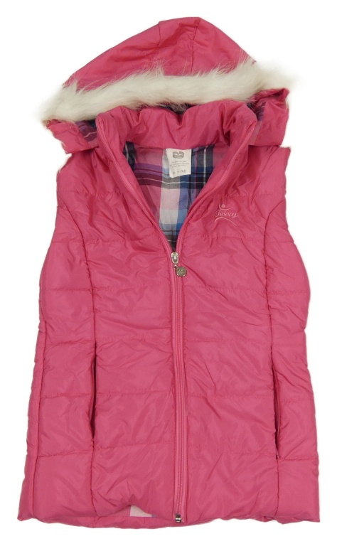 Tmavorůžová šusťáková zateplená vesta s kapucí s kožešinou