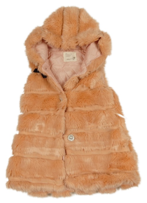 Oranžová kožešinová zateplená vesta s kapucí Big Cock