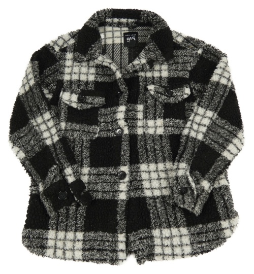 Černo-bílá kostkovaná huňatá košilová bunda New Look