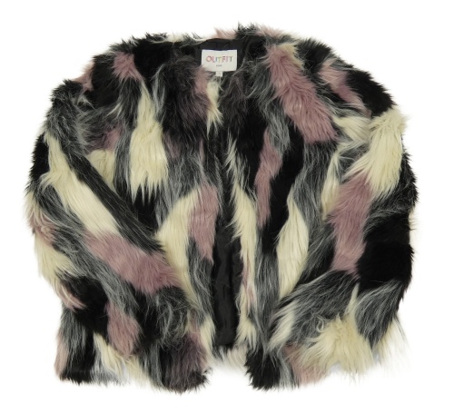 Černo-růžovo-bílá vzorovaná kožešinová podšitá bunda