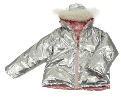 Stříbrná šusťáková oboustranná zimní bunda s kapucí