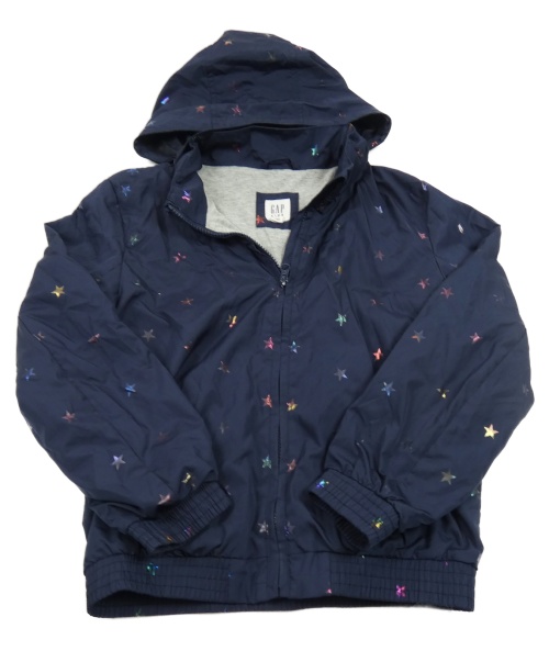 Tmavomodrá šusťáková jarní bunda s hvězdami a kapucí GAP