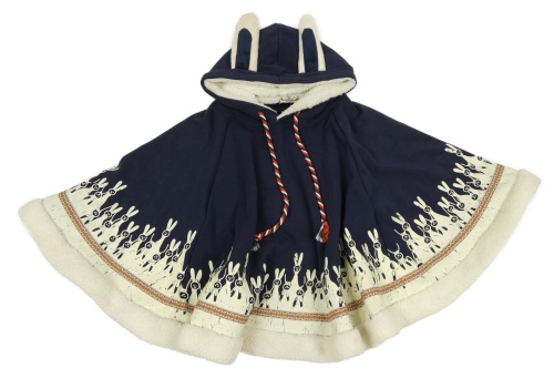 Tmavomodré teplákové pončo se zajíčky a kapucí
