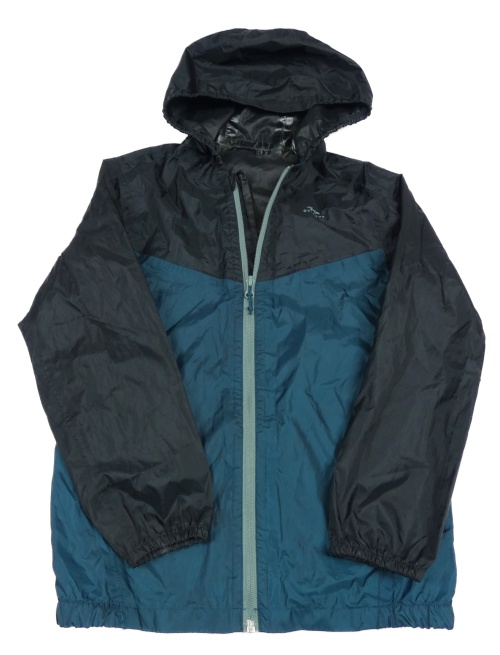 • Tmavopetrolejovo-černá šusťáková nepromokavá bunda s kapucí Quechua