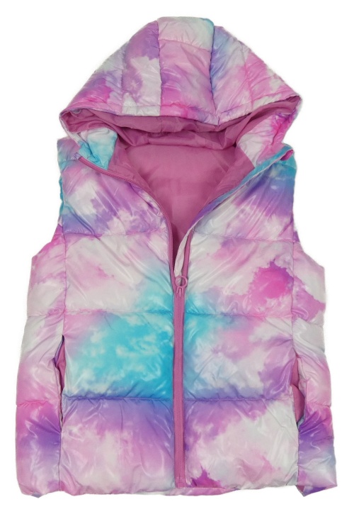 Růžovo-modrá batikovaná šusťáková zateplená vesta s kapucí Dunnes stores
