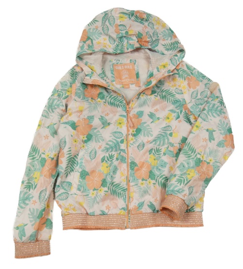 Světlerůžovo-zelená květovaná šusťáková jarní bunda s kapucí C&A