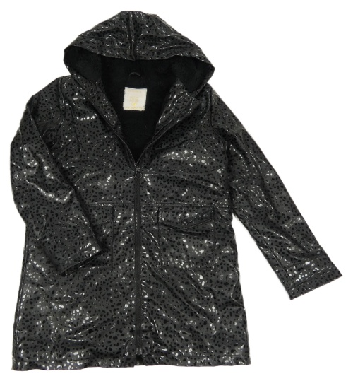 Černá puntíkatá lesklá zateplená bunda s kapucí Matalan