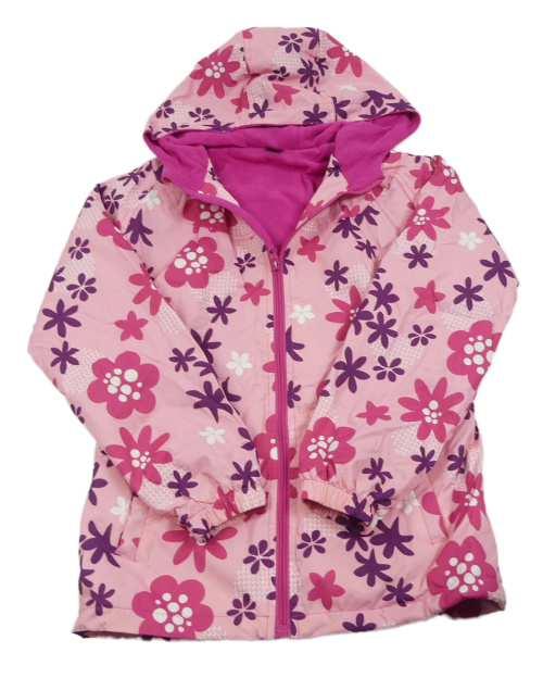Světlerůžová květovaná šusťáková podzimní bunda s kapucí