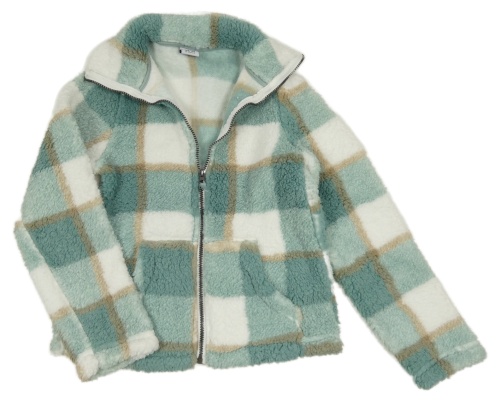 Šalvějovo-bílo-hnědá kostkovaná huňatá bunda Page one young