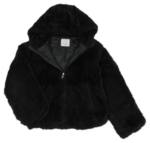 Černá kožešinová zateplená bunda s kapucí Primark