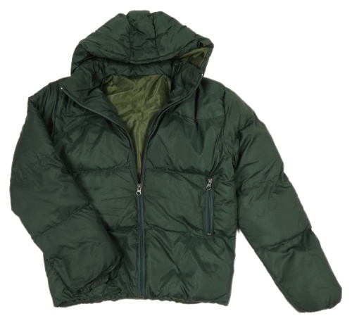 Tmavozelená šusťáková zimní bunda s kapucí