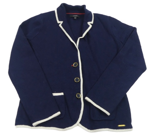 Tmavomodrý pletený kabátek s bílým lemem M&S