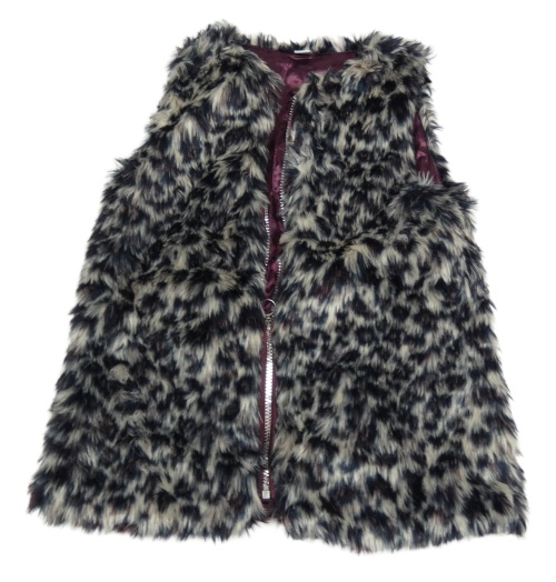 Béžovo-šedo-vínová kožešinová podšitá vesta Tu