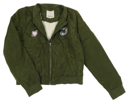 Olivová šusťáková crop zateplená bunda s nášivkami Primark