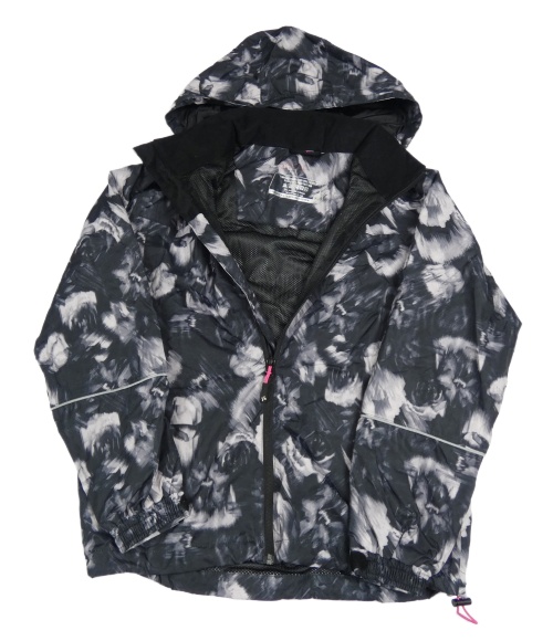 Černo-šedá vzorovaná šusťáková podzimní bunda s kapucí