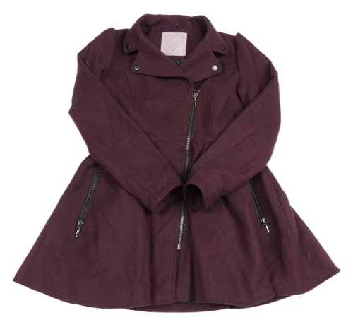 Tmavovínový melírovaný vlněný podšitý kabát St. Bernard