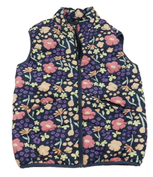 Tmavomodrá šusťáková prošívaná zateplená vesta s kytičkami Name it