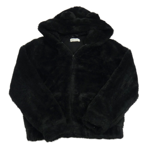 Černá kožešinová podšitá bunda s kapucí s oušky H&M
