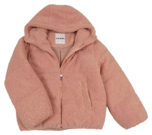 Starorůžová huňatá zimní bunda s kapucí