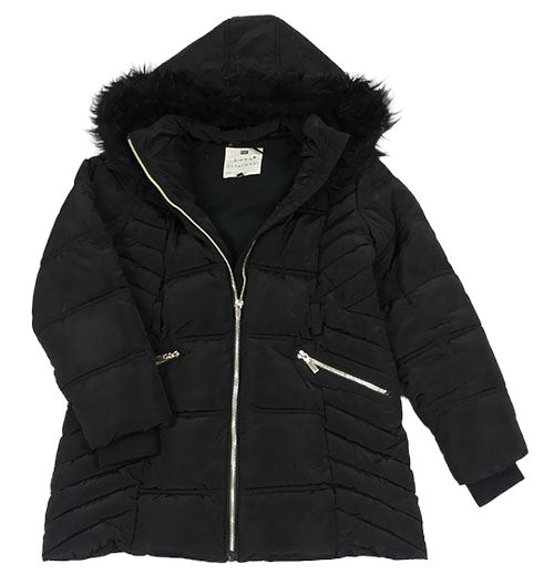 Černá šusťáková zimní bunda s kapucí s kožešinou F&F