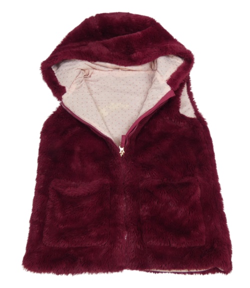 Vínová kožešinová podšitá vesta s kapucí Nutmeg