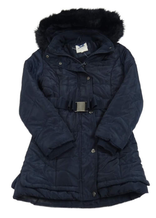 Tmavomodrý šusťákový zimní kabát s páskem a kapucí Jasper Conran