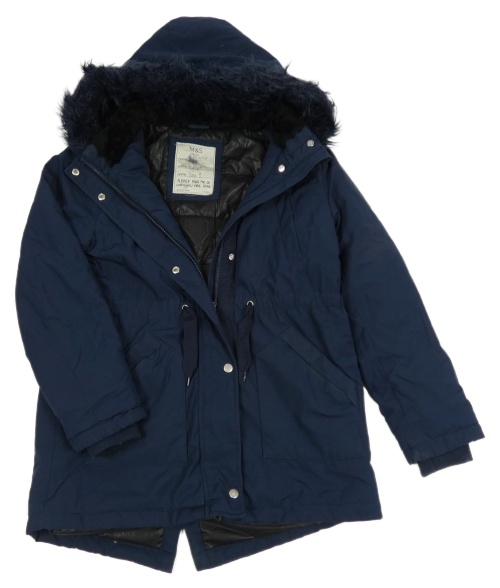 Tmavomodrá šusťáková zimní parka s kapucí s kožešinou M&S