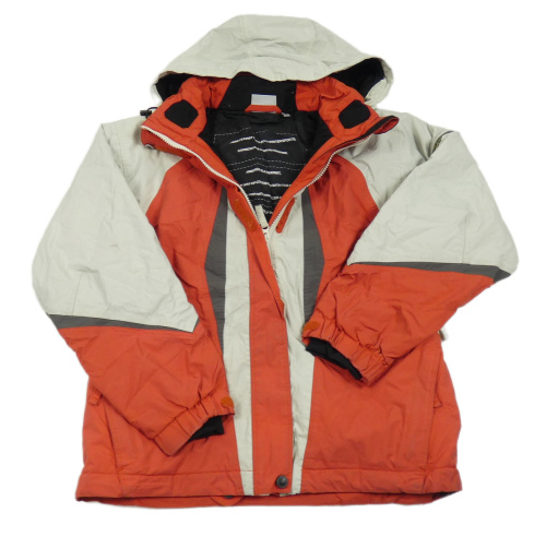 Červeno-šedá šusťáková lyžařská bunda s kapucí
