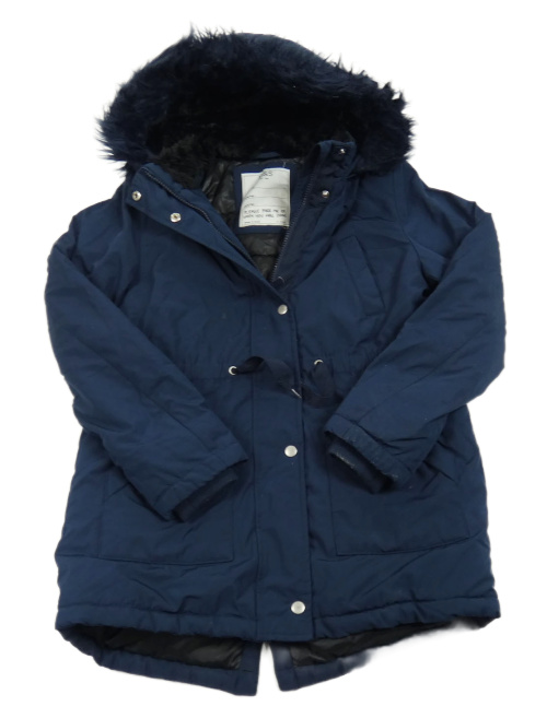 Tmavomodrá šusťáková zimní bunda s kapucí s kožešinou M&S