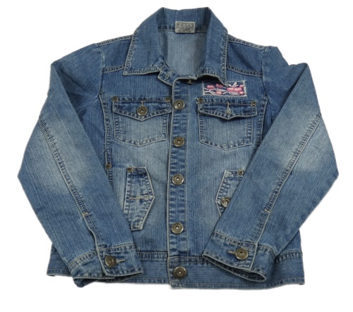 Modrá riflová bunda s výšivkami květů CrashOne