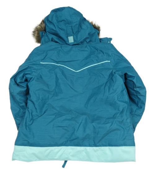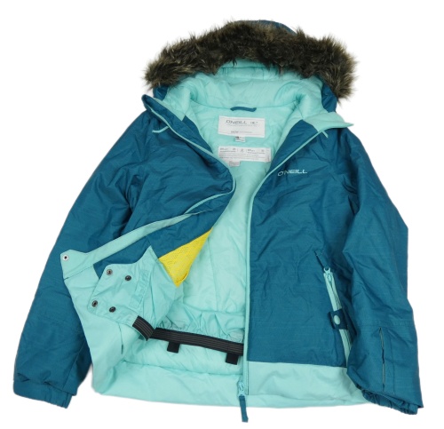 Petrolejoo-mátová vzorovaná šusťáková zimní lyžařská bunda s kapucí s kožešinou O´neill