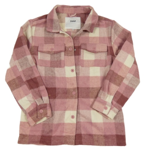 Růžovo-smetanová kostkovaná košilová flaušová bunda Yigga