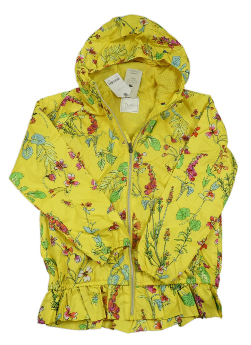 Nové- Žlutá šusťáková jarní bunda s kytičkami a kapucí Next