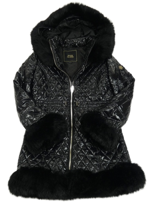 Černý šusťákový nepromokavý zimní kabát s kapucí River Island