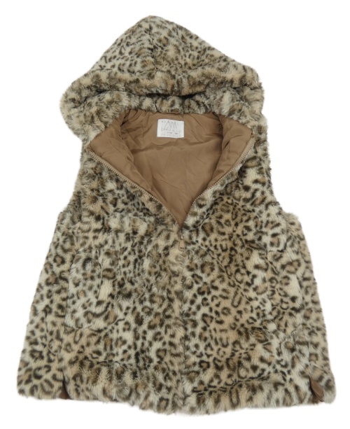 Béžová leopardí kožešinová podšitá vesta s kapucí Zara