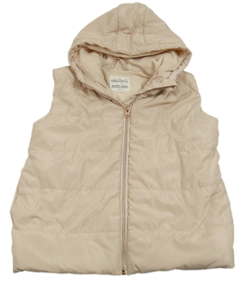 Béžová šusťáková zateplená vesta s kapucí