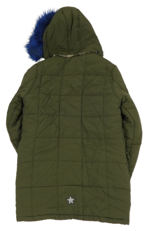 Khaki šusťáková zimní parka s kapucí a nášivkami
