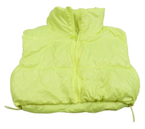 Neonově žlutá šusťáková zateplená crop vesta