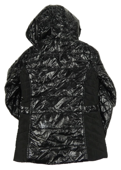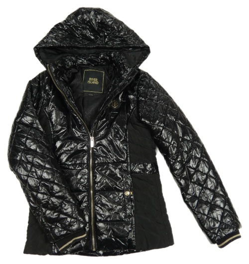 Černá šusťáková lesklá prošívaná zimní bunda s kapucí River Island