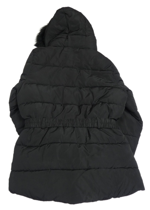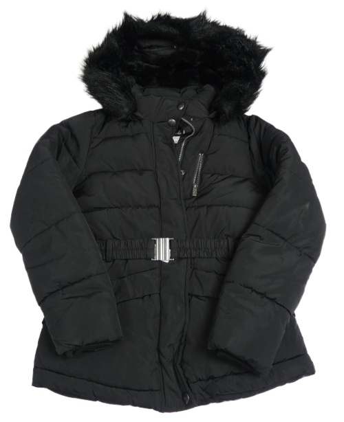 Černá prošívaná šusťáková zimní bunda s kapucí s kožešinou a páskem C&A