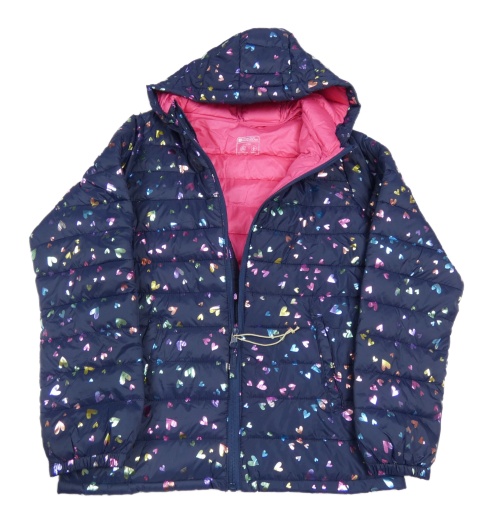 • Tmavomodrá prošívaná šusťáková zateplená funkční bunda se srdíčky a kapucí Mountain Warehouse