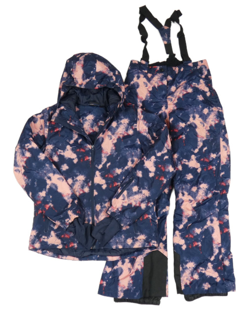 2 set - tmavomodro-růžová šusťáková funkční lyžařská bunda + oteplovačky s kšandami Crivit