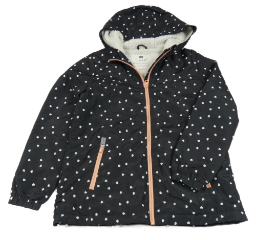 Černá šusťáková zateplená bunda se srdíčky a kapucí F&F