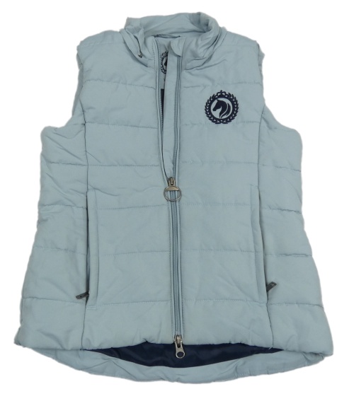 Světlemodrošedá prošívaná šusťáková funkční zateplená jezdecká vesta s koníkem TCM