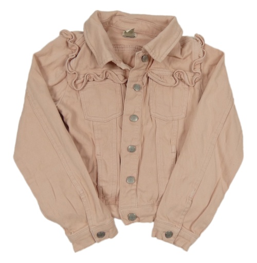 Světlerůžová riflová crop bunda s volánky Monsoon