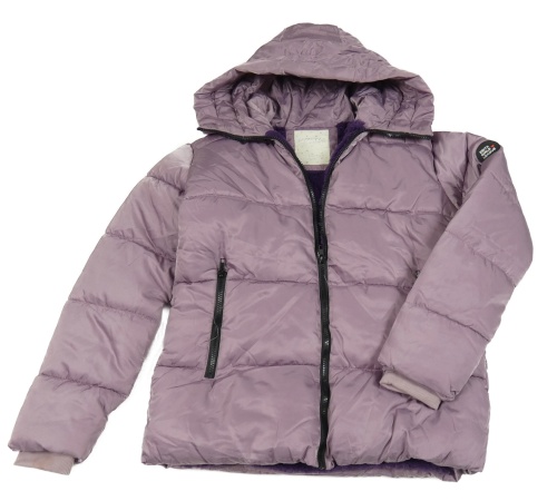 Pudrově fialová šusťáková prošívaná zimní bunda s kapucí