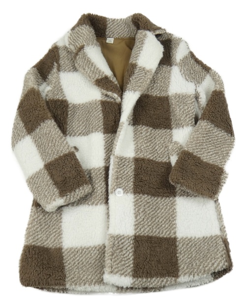 Hnědo-bílý kostkovaný huňatý podšitý kabát Shein