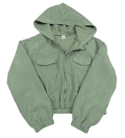 Zelená žebrovaná crop lehká bunda s kapucí shein